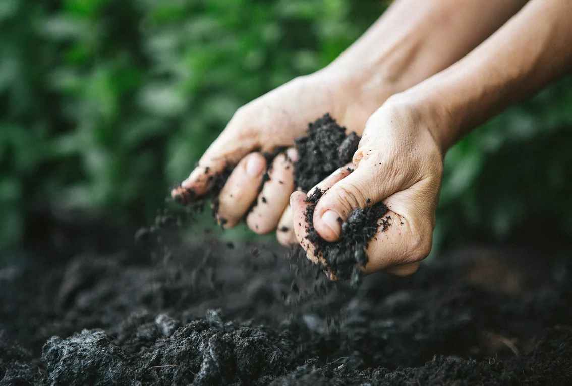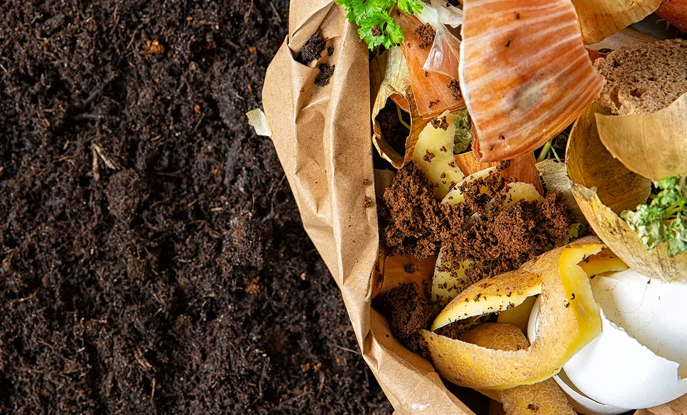 Compostagem aplicada para tratamento e reciclagem dos resíduos orgânicos garantindo o reaproveitamento e reinserção em cadeias de valor por meio da economia circular.
